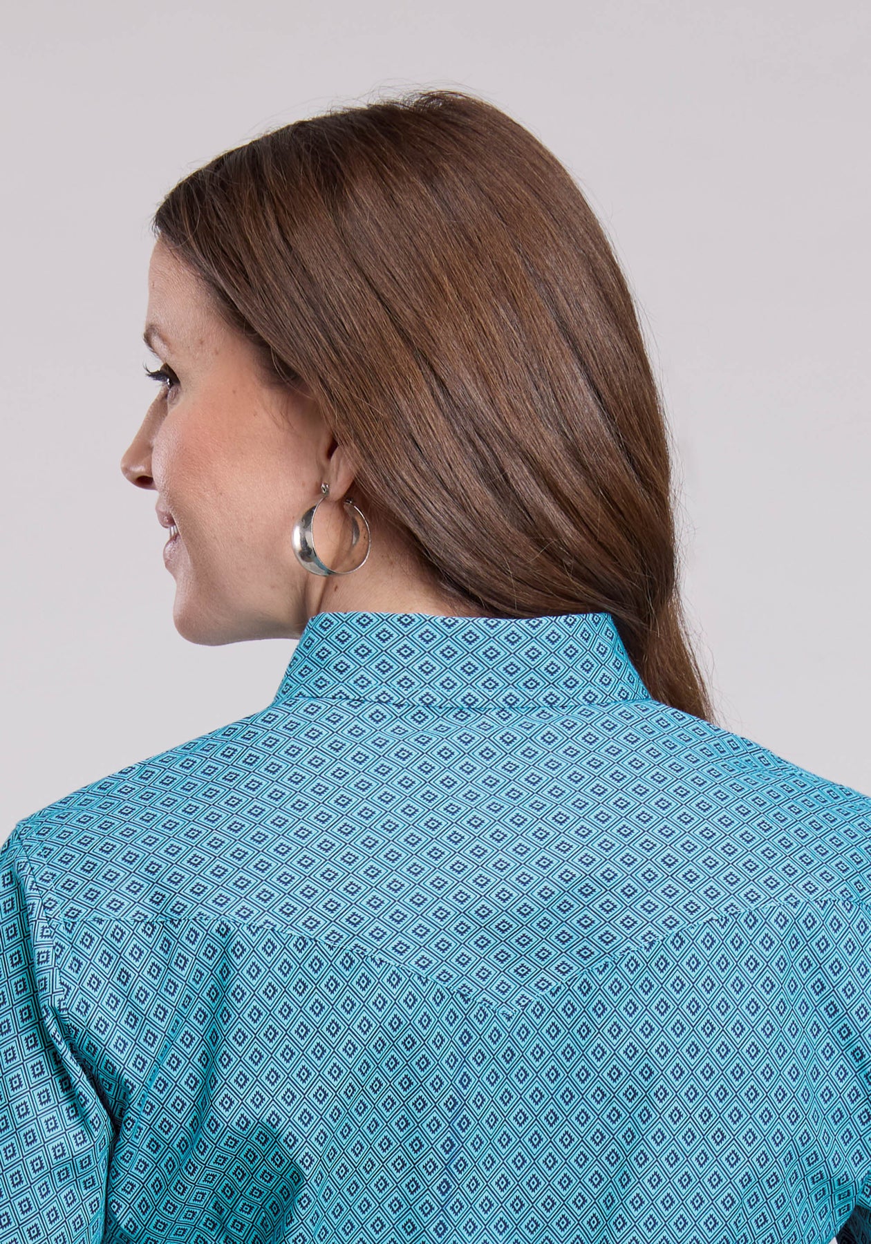 Womens Long Sleeve Snap Aztec Diamond Geo Western Shirt