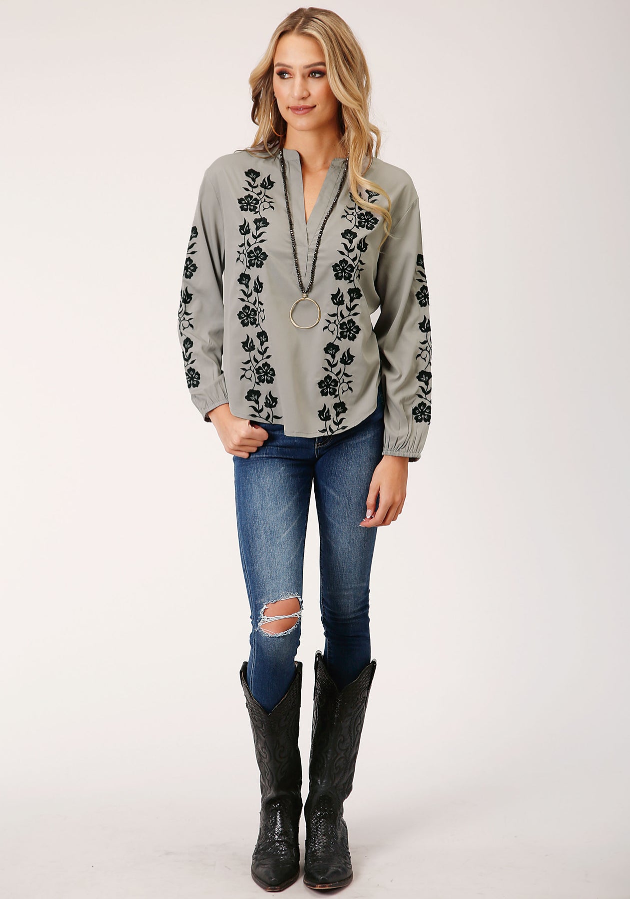 Womens Long Sleeve Poly Crepe Vneck Placket Blouse