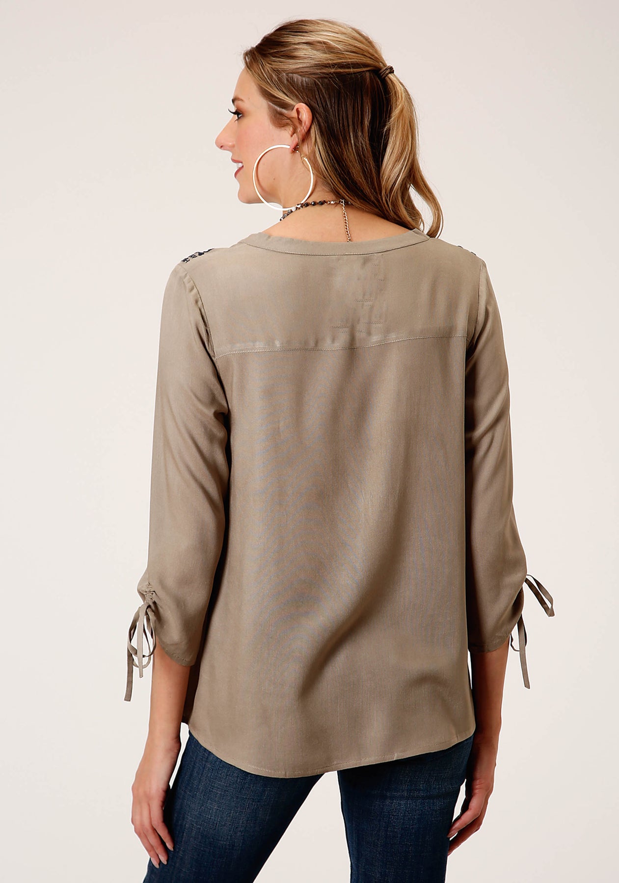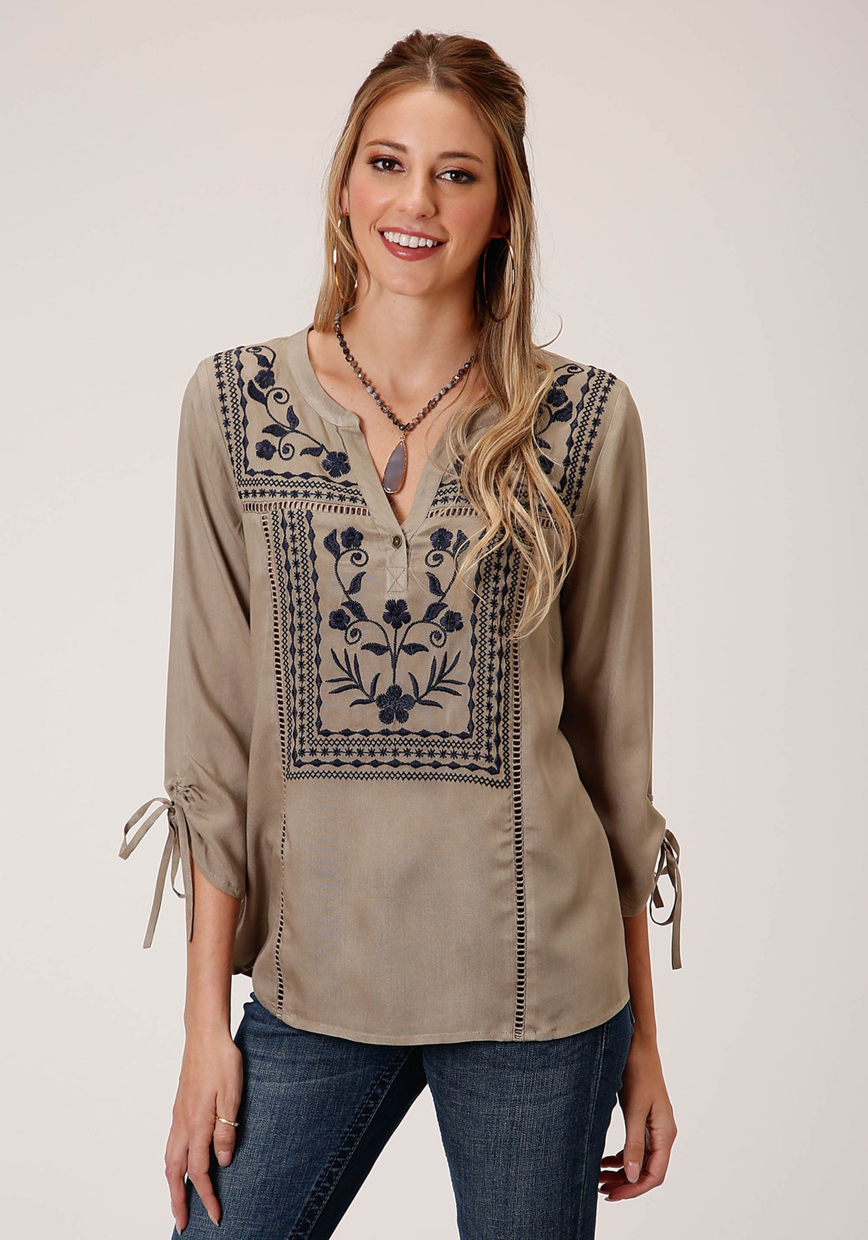 Womens Long Sleeve Rayon Challis Peasant Blouse