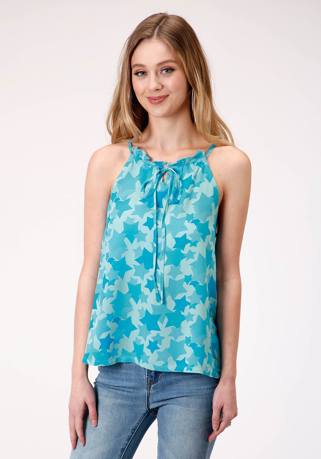 Womens Sleeveless Star Printed Strappy Tank Blouse