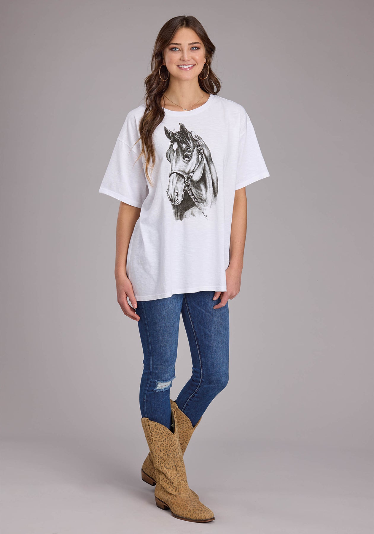 Womens White Cotton Slub Jersey Short Sleeve Pullover Western Shirt