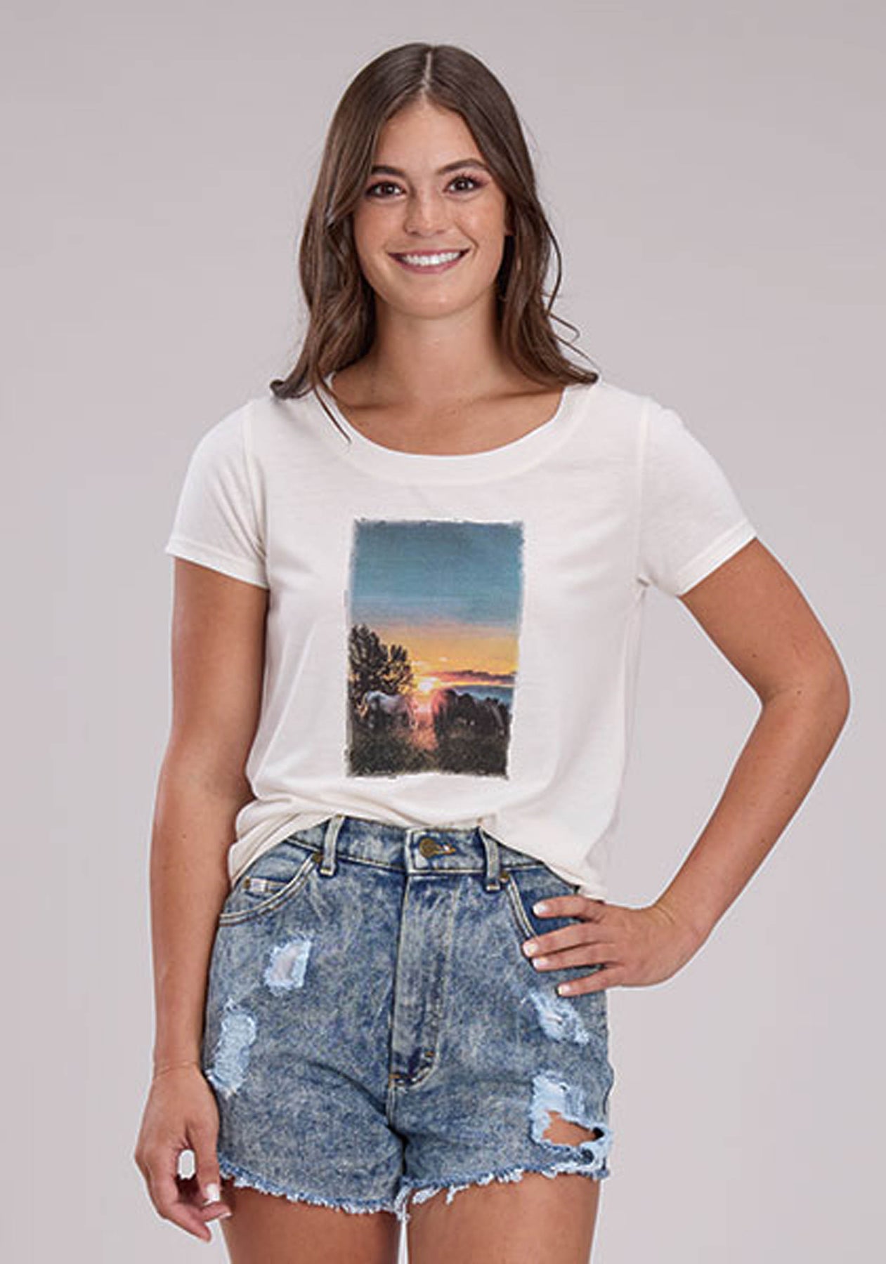 Womens Jersey Knit Crew Neck Tee Short Sleeve Pullover Western Shirt