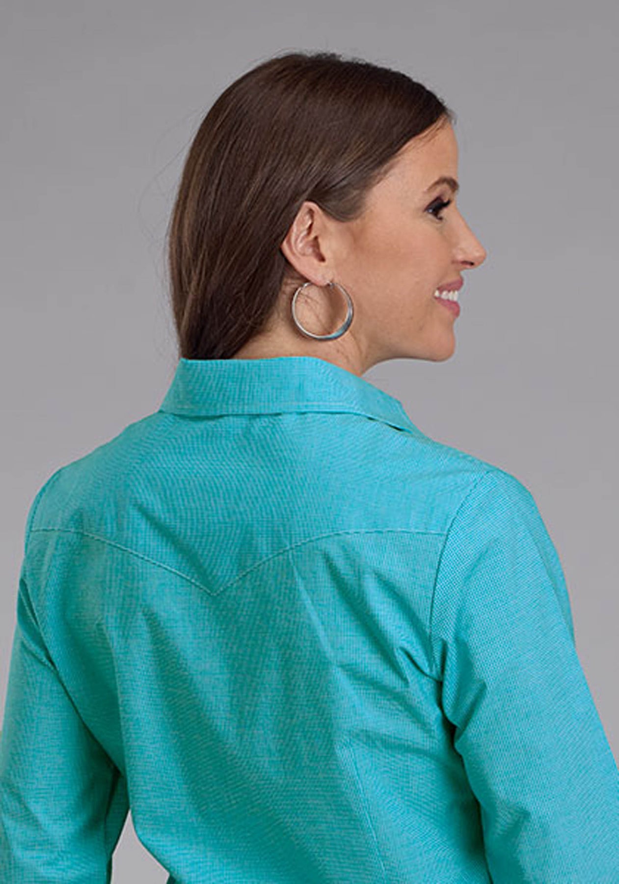 Womens Stretch Mini Check - Turquoise Long Sleeve Button Western Shirt