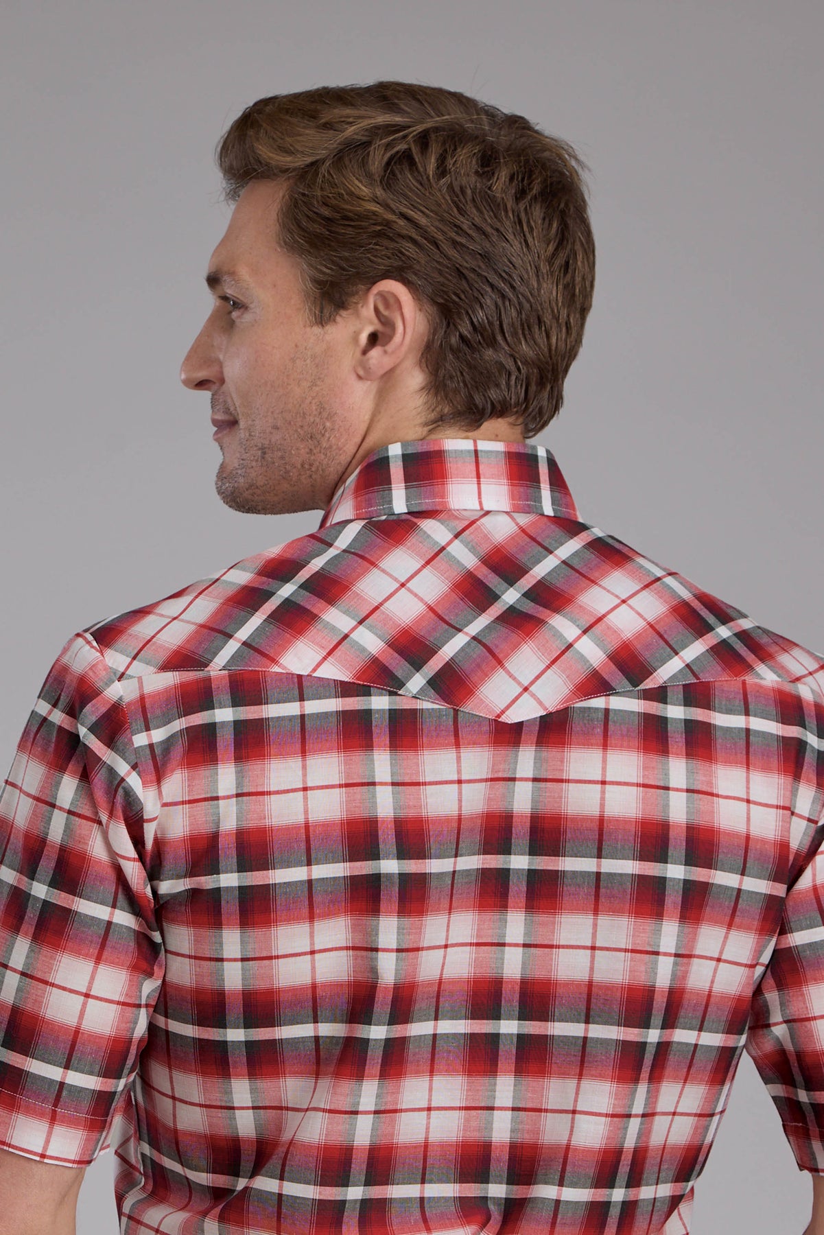 Mens Red Plaid Short Sleeve Snap Western Shirt