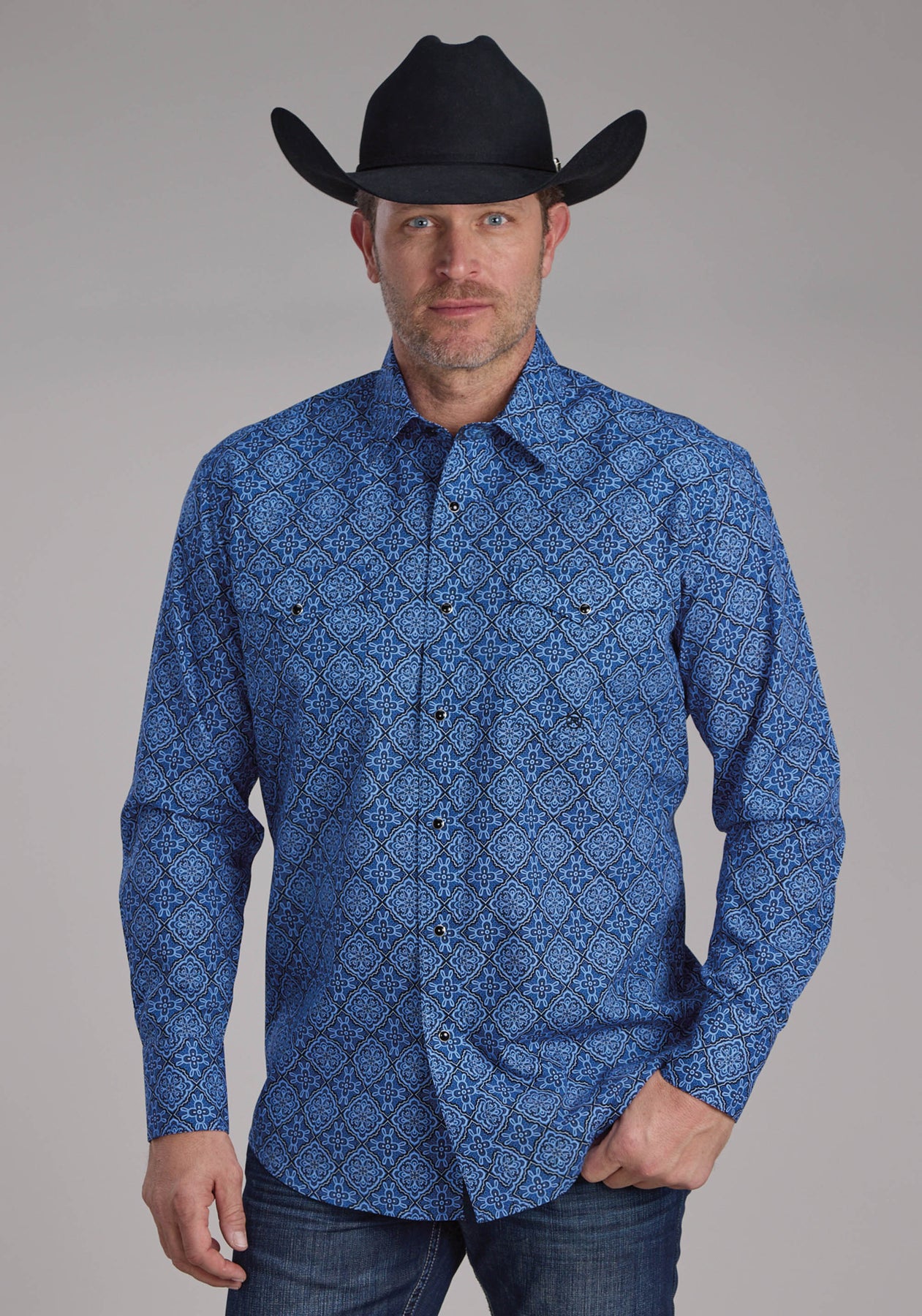Mens Saphire Ornamental Long Sleeve Snap Western Shirt