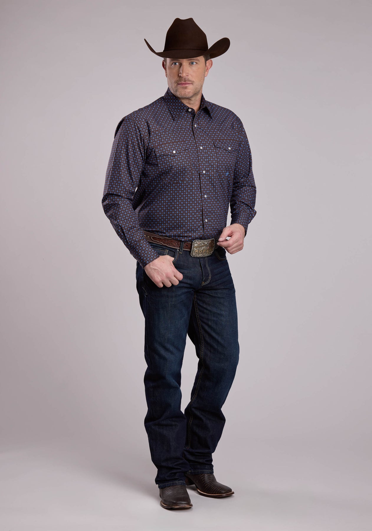 MENS LONG SLEEVE SNAP WINTER FOULARD WESTERN SHIRT