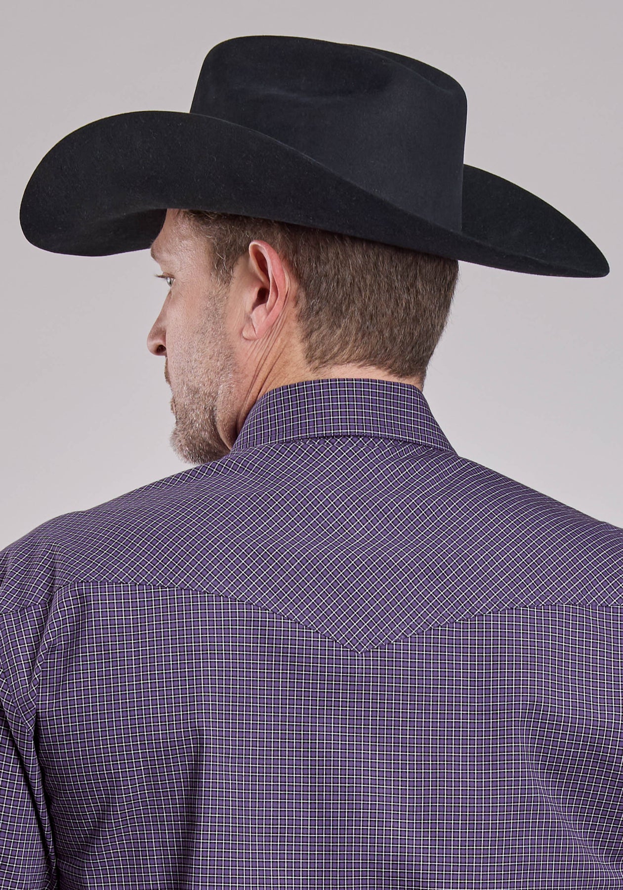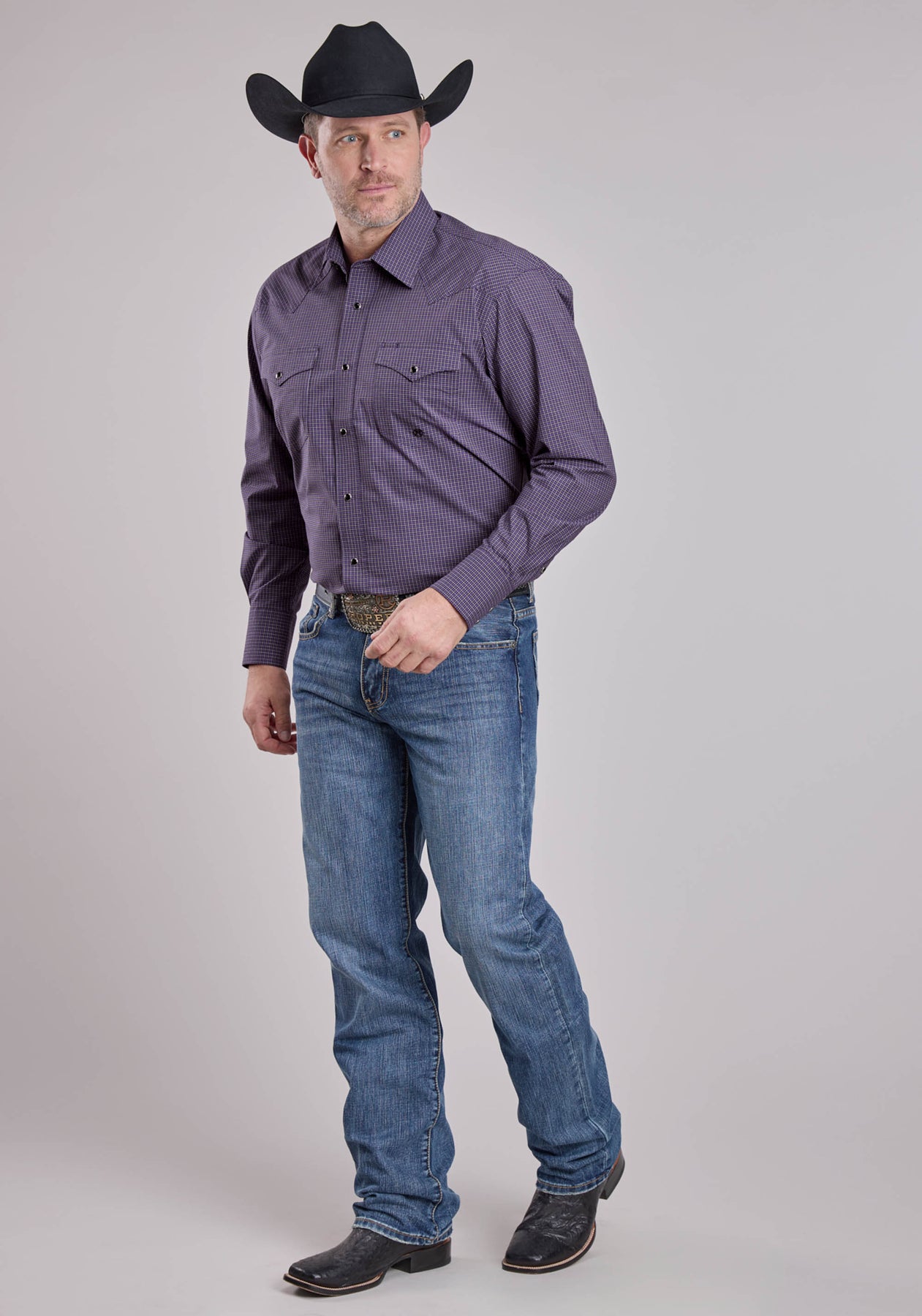 MENS LONG SLEEVE SNAP STRETCH MINI CHECK - PURPLE WESTERN SHIRT