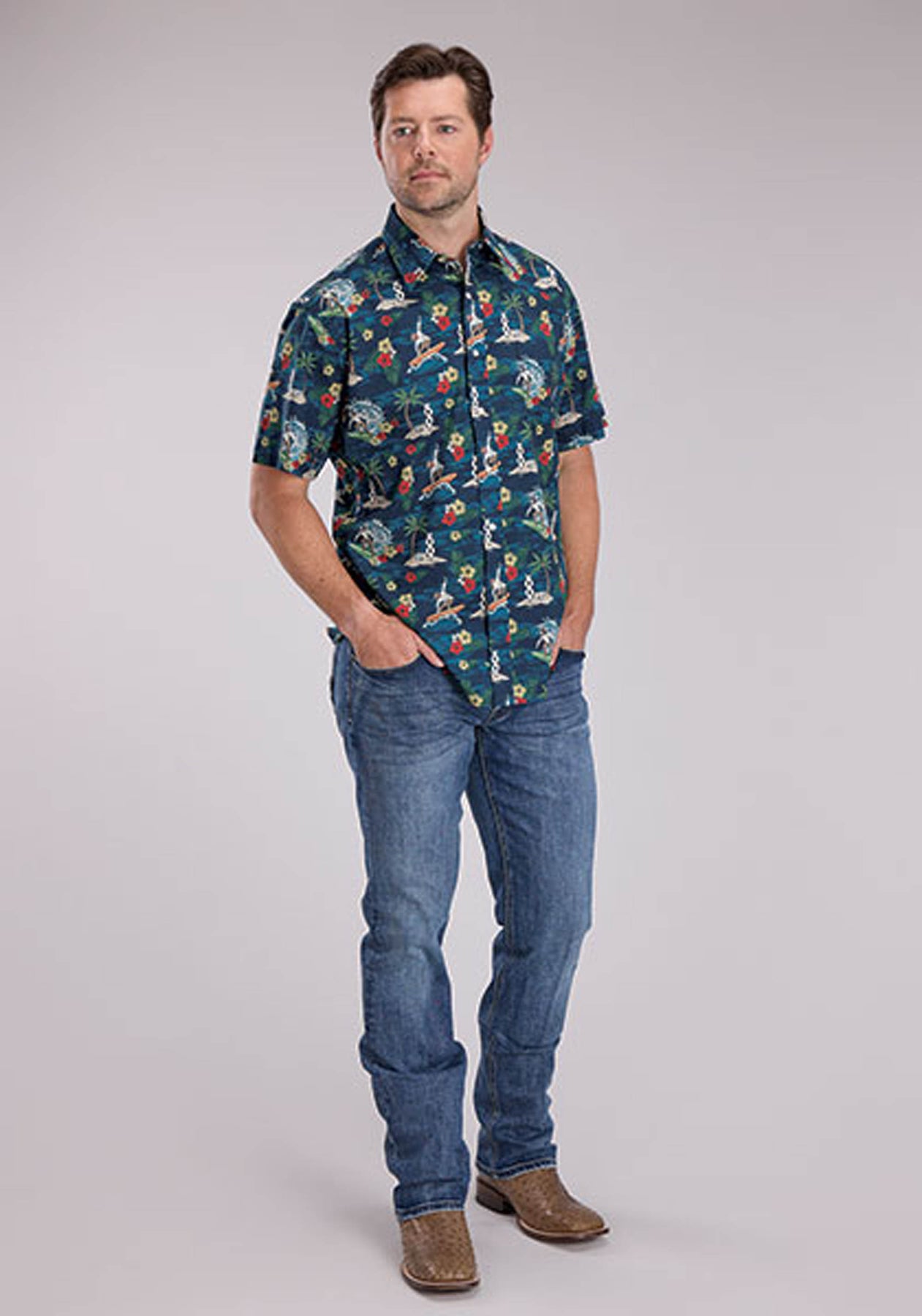 Mens Panlolos Print Short Sleeve Snap Western Shirt