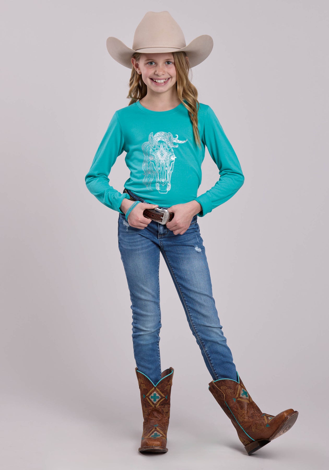 GIRLS LONG SLEEVE PULLOVER POLY RAYON JERSEY TEE WESTERN SHIRT