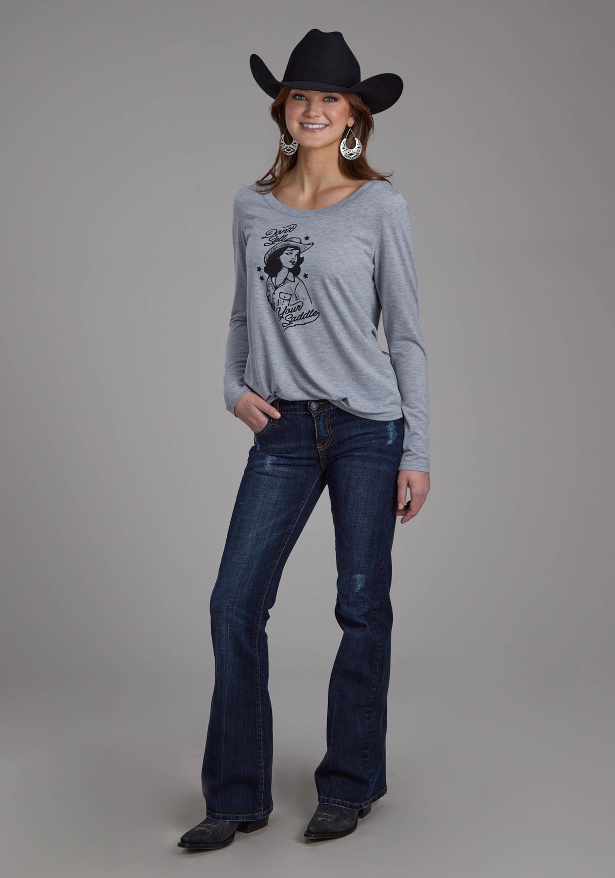 WOMENS POLY RAYON LONG SLEEVE JERSEY TEE LONG SLEEVE PULLOVER WESTERN SHIRT