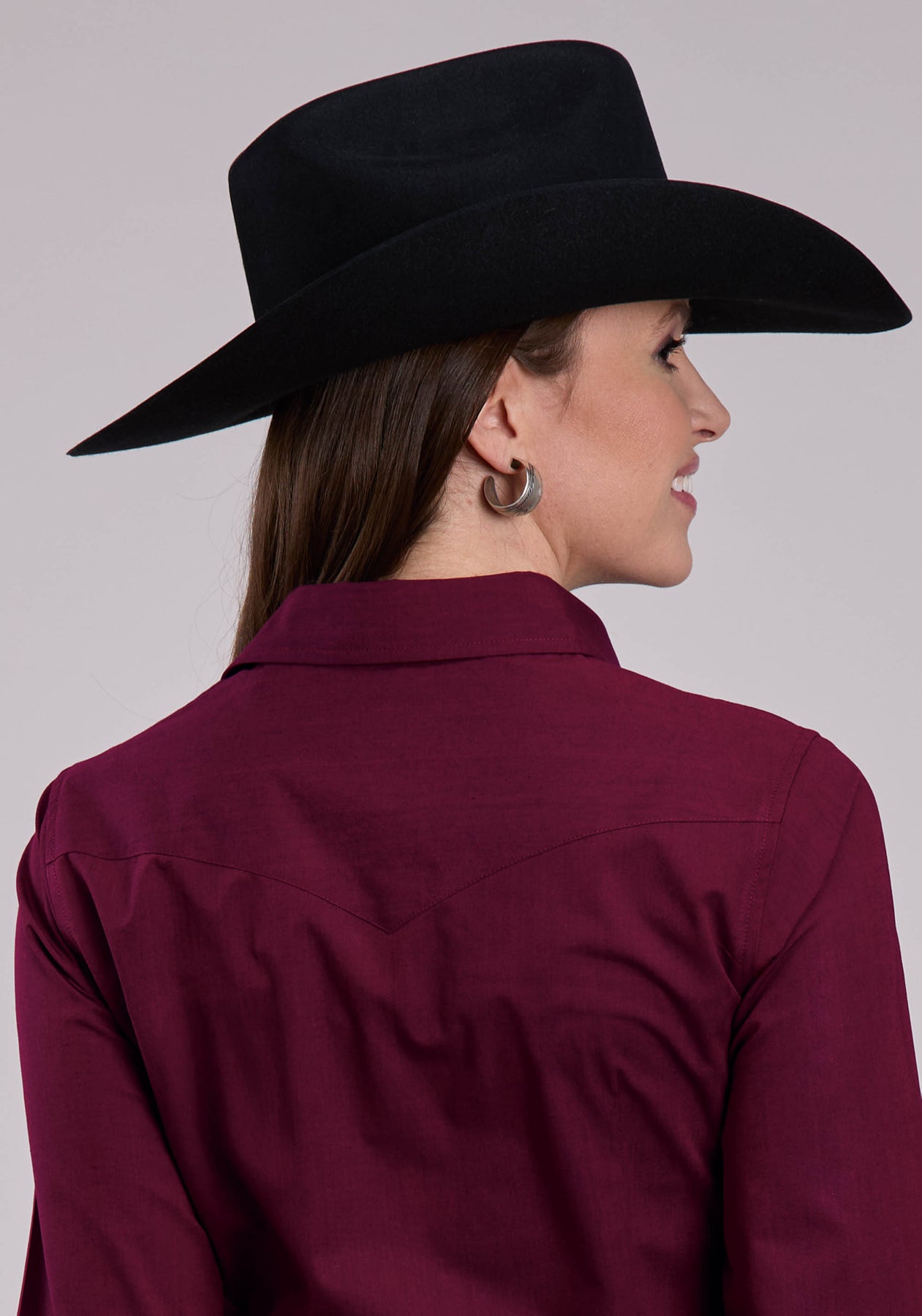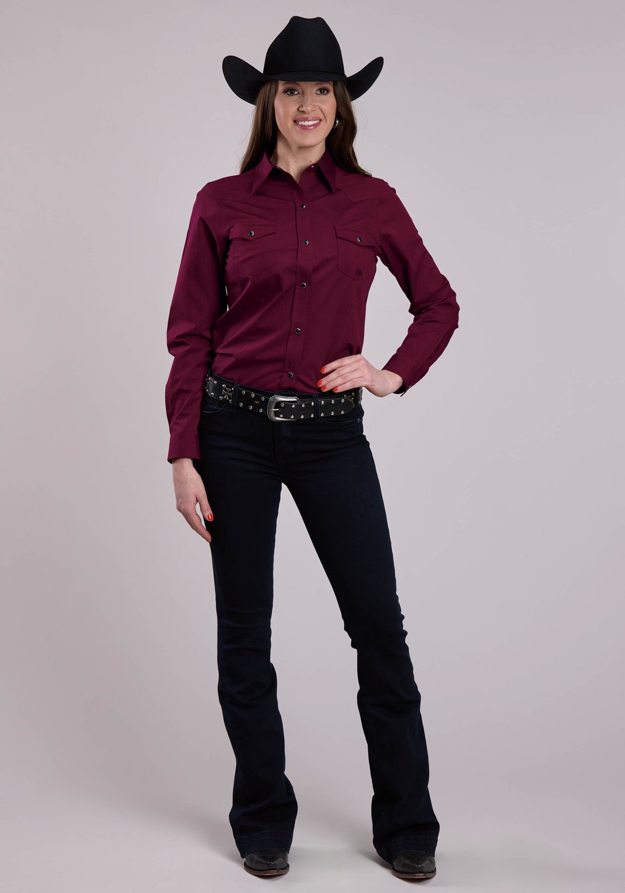 WOMENS LONG SLEEVE SNAP BLACK FILL - WINE WESTERN SHIRT