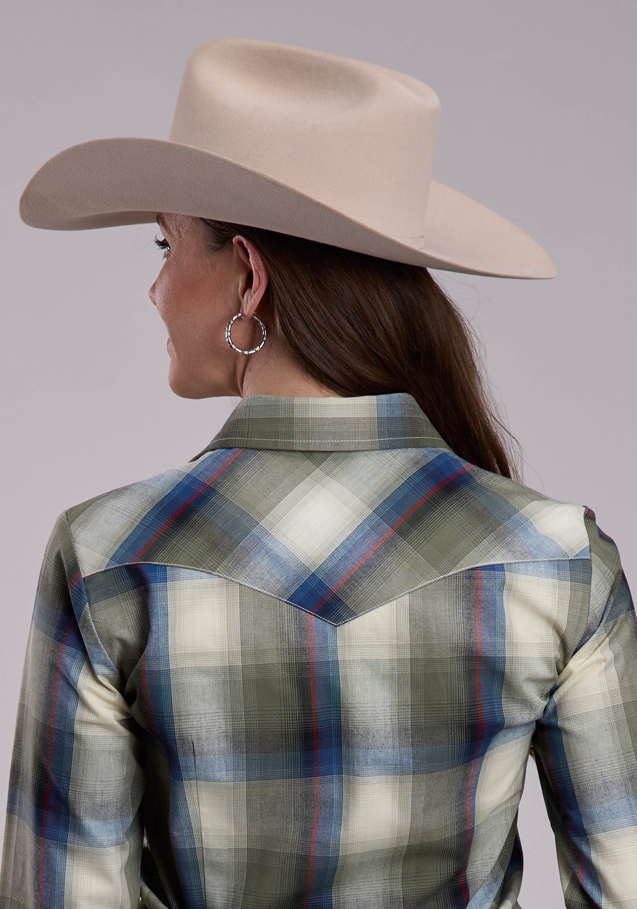WOMENS LONG SLEEVE SNAP EVERGREEN PLAID WESTERN SHIRT