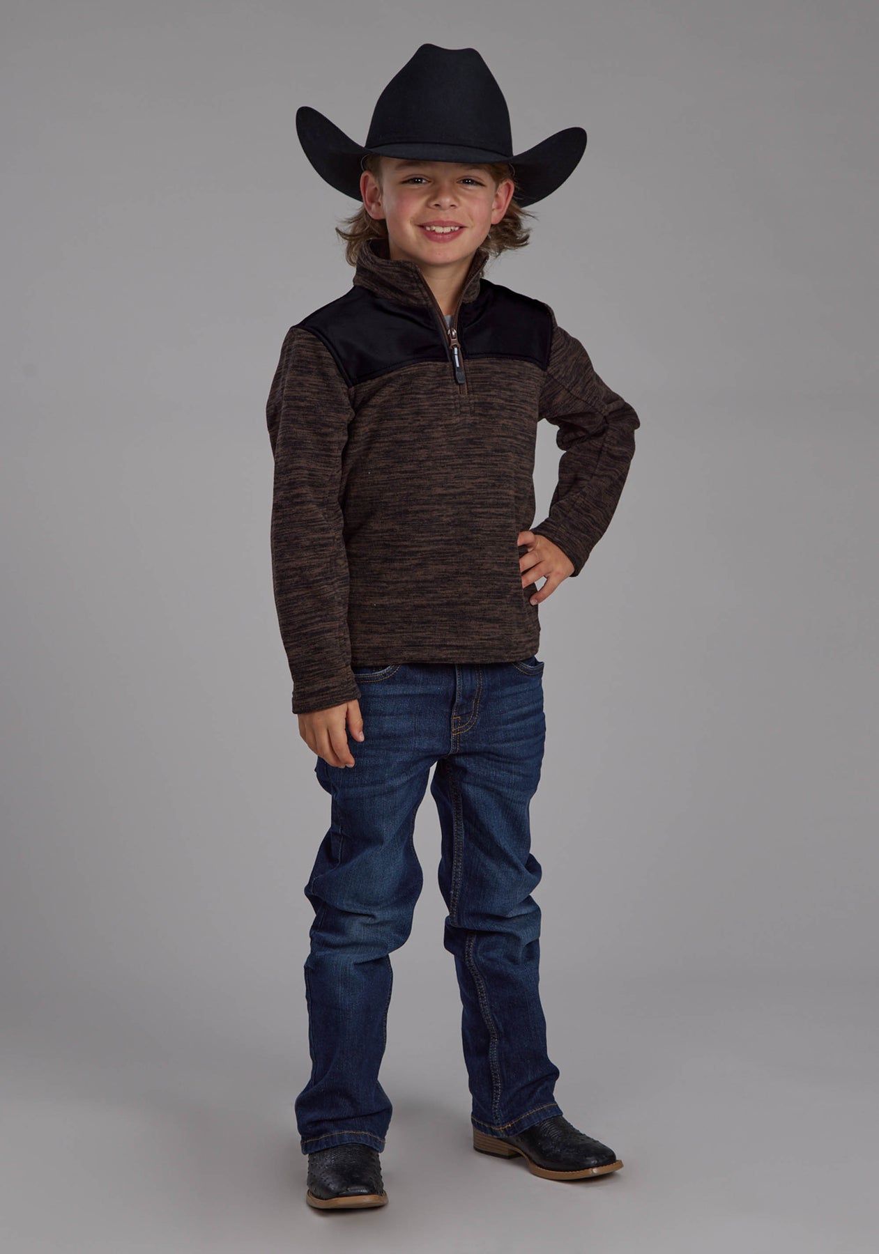 BOYS BROWN BLACK MICRO FLEECE 3/4 ZIP FT ZIPPER JACKET