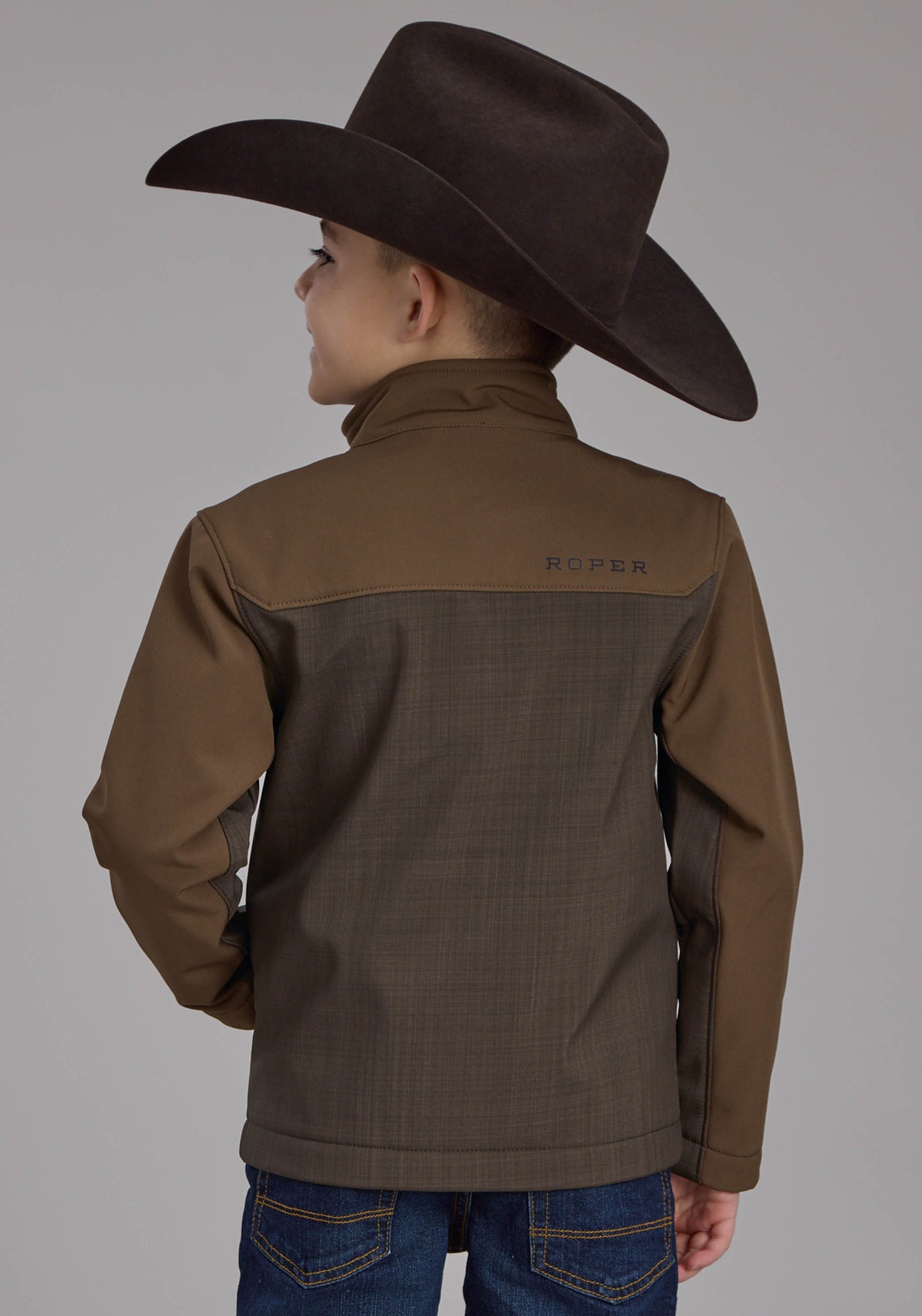Boys Brown Chocolate Pieced Softshell Zipper Jacket